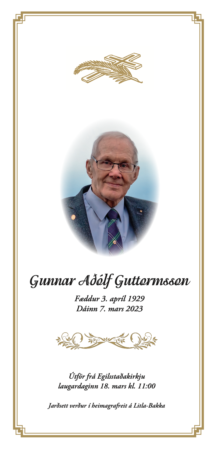Útför Gunnars Aðólfs Guttormssonar frá Egilsstaðakirkju kl 11