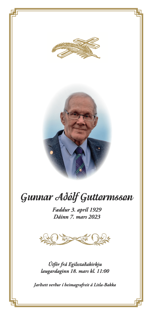 Hægt er að fylgjast með streymi frá útför Gunnars Aðólfs Guttormssonar hér