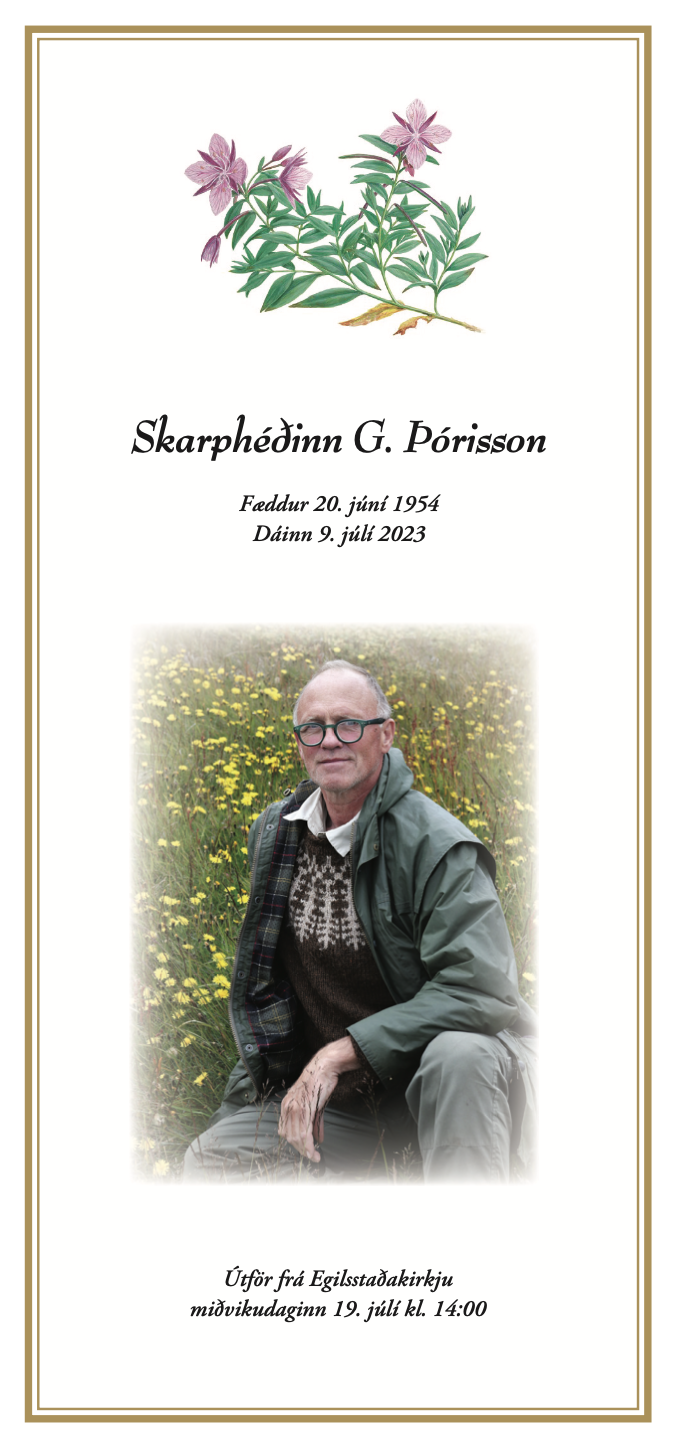 Útför Skarphéðins G. Þórissonar verður gerð frá Egilsstaðakirkju í dag, 19. júlí kl 14.00.
