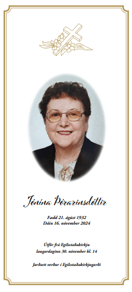 Útför Jónínu Þórarinsdóttur (Jónu frá Unalæk) verður gerð frá Egilsstaðakirkju kl. 14:00 í dag, 30. nóvember.