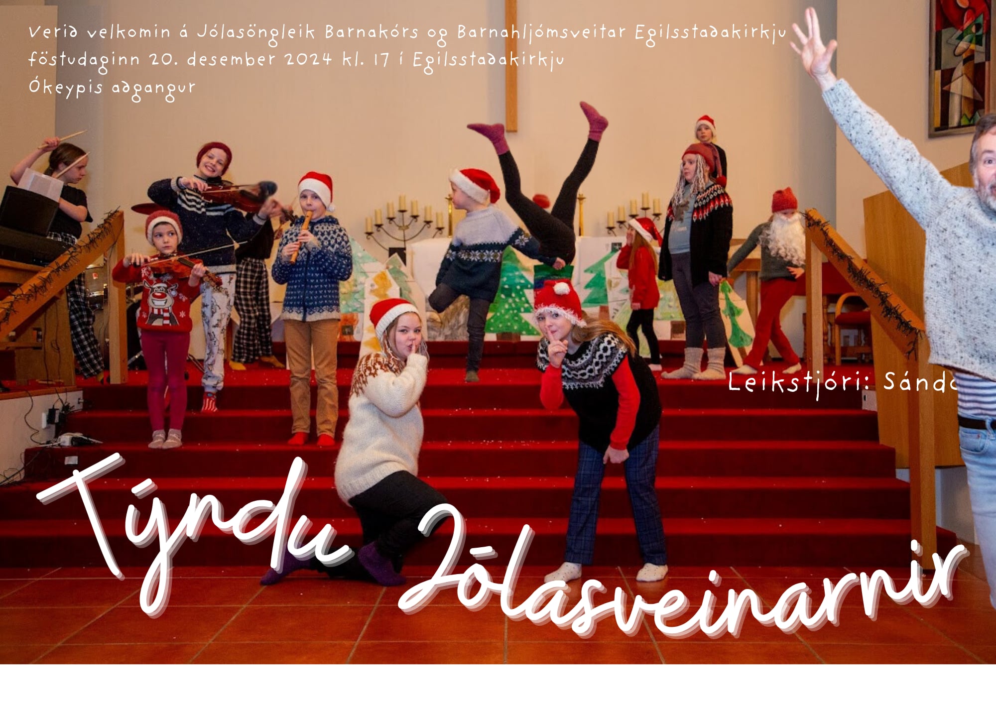 Barnakór og Barnahljómsveit Egilsstaðakirkju sýna jólasöngleikinn „Týndu jólasveinarnir“ í kirkjunni á föstudaginn, 20. desember kl. 17:00. Þetta er nýr söngleikur eftir Sándor Kerekes tónlistarstjóra kirkjunnar, sem er jafnframt leikstjóri. Um er að ræða stutta en skemmtilega sýningu fyrir alla fjölskylduna þar sem íslensku jólasveinarnir komast í hann krappan en kynnast líka boðskapnum um fæðingu Jesú. Við erum öll velkomin á sýninguna og aðgangur er ókeypis.
