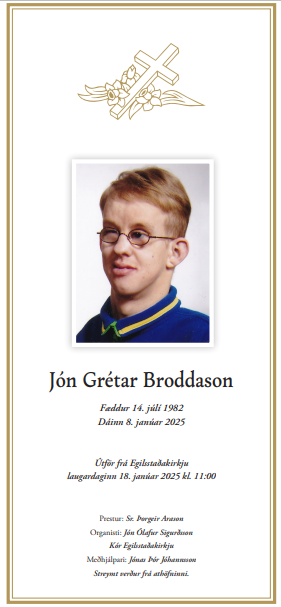 Útför Jóns Grétars Broddasonar verður gerð frá Egilsstaðakirkju í dag, laugardaginn 18. janúar kl. 11.00.