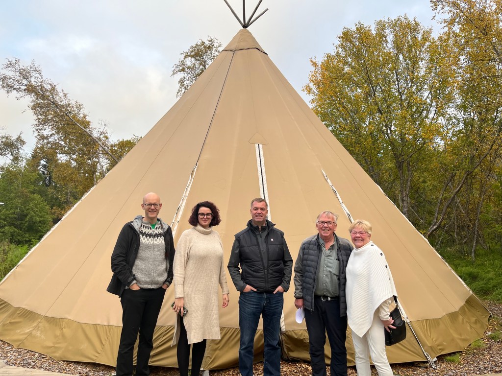 Í gær fór undirbúningshópur frá Egilsstaðakirkju í vettvangsferð í Hallormsstað og er myndin tekin við það tilefni fyrir framan tjaldið góða sem Heiðrún hótelstýra sýndi.